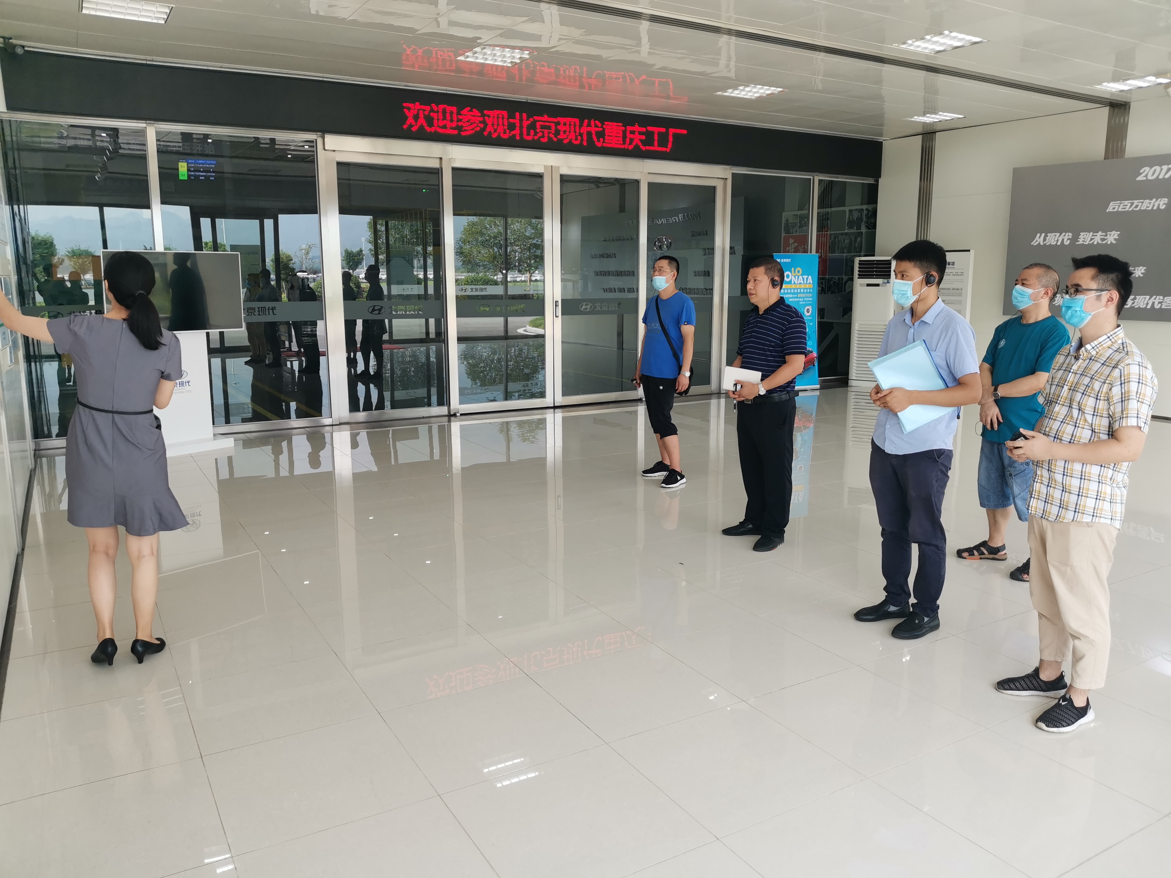 2020年8月3日,交通运输系主任陈刚和学生工作部副主任程康,带领新能源汽车维修教研组教师,前往北京现代重庆分公司开展企业调研活动。北京现代汽车公司经营范围包括:设计、开发、生产和销售轿车、卡车整车、RV(Recreation Vehicle)、发动机及其零部件,公司总部位于北京,在北京、河北、重庆共计设有四个生产基地,北京现代重庆分公司年生产汽车30万辆。