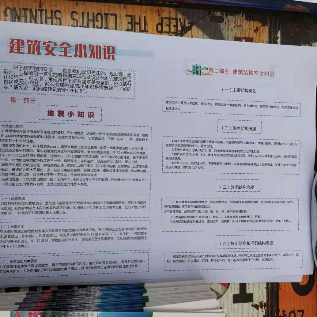 建筑让生活更美好 生活因建筑更迷人 建筑安全进万家社区活动 2021年5月27日上午,建筑工程系的同学们在丁德超老师的带领下,举行了'’职业教育活动周进社区‘'为主题的活动。 宣传过程中,志愿者们在社区设立宣传点,悬挂标语,向居民科普了建筑安全小知识。 志愿者们给居民们讲解了地震知识和建筑结构安全知识,他们生动的讲解,吸引了众多居民观看学习,活动现场人头攒动,气氛活跃。 通过此次进社区的活动,同学们增强了自己的理论与实践相结合,同时也增强了自己与他人的社交能力,为以后的学习奠定了良好的基础。