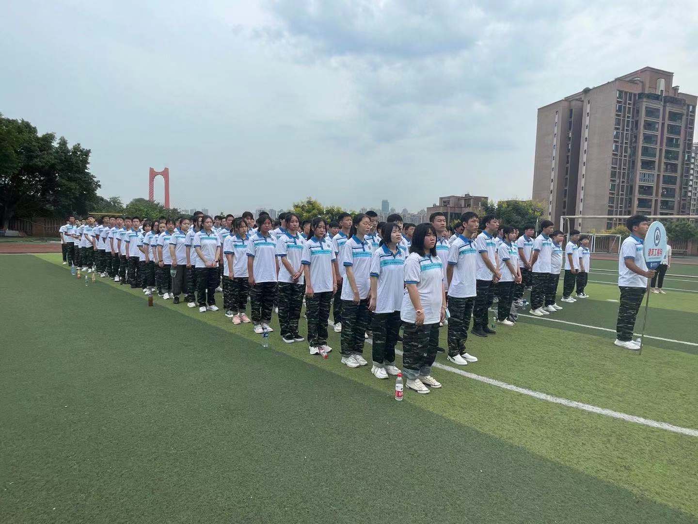 迷彩青春 扬帆启航 9月4日,重庆工信职业学院2021级新生军训动员大会在校内足球场举行。建筑工程系的学子们整理好衣装,积极参加本次军训动员大会,保持良好的心态迎接新的校园生活。 刚踏入重庆工信职业学院的你们,首要任务就是上好军训第一课!军训具有其他教育不可替代的作用。希望新生以积极的姿态、昂扬的斗志投入到军训中,以优秀士兵的标准严格要求自己,完成各项训练科目的任务。不断锤炼热爱国家、建设国家、奉献国家的思想品格,养成朝气蓬勃的精神风貌、令行禁止的纪律意识、起居有序的生活习惯、团结协作的集体观念。 或许你们在刚进重庆工信职业学院准备军训时,心中还带着些许的不安与迷茫,这群即将与自己共度几年时光的同学是怎样的,又是怎样的磨练,会不会很辛苦。但相信有了你们的配合和努力,教官们的悉心教导,工作人员的认真负责,接下来的军训之旅一定会顺利进行的。