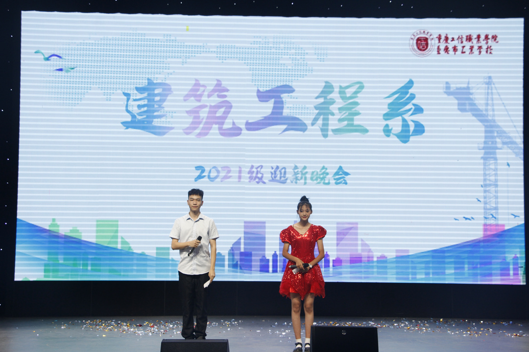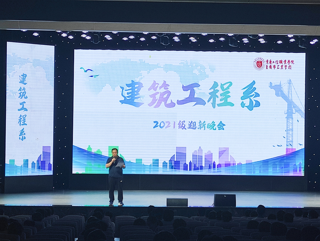 2021年9月28日,重庆工信职业学院建筑工程系2021级“青春澎湃,星光璀璨”迎新晚会在学校大礼堂举行。系部主任谭伟老师,以及系部教师和班主任与新生齐聚一堂,共同观看演出。 朗诵《青春之歌》 用朗诵书写青春的多彩 朝气蓬勃 青春洋溢 开足马力 迎接光辉的青春 舞蹈《天天向上》 劲爆的舞蹈 点燃了身体里每一个细胞 魅力四射的舞台 是他们的主场 灯光下炸裂的 是他们的表演 说唱《子弹口水》 嘻哈饶舌的同学们改编歌词 唱出自己的青春 唱出自己的态度 唱出对学校的热爱和对生活的憧憬 这就是金海rap! 舞蹈《街舞串烧》 华丽的舞台 璀璨的灯光曼妙的音乐 动人的表演 举手投足间彰显街舞串烧卓越风姿 歌曲《忘我》 一首王的忘我 华丽的舞台 璀璨的灯光曼妙的音乐 动人的表演 举手投足间彰显街舞串烧卓越风姿 舞蹈《Yes OK》 用舞蹈演绎青春的多彩 朝气蓬勃 青春洋溢 动感的舞蹈身姿 铺陈开一幅缤纷的新时代青春画卷 向海而生 为梦而来 百年正青春 永远跟党走 关于我们的故事才刚刚开始 前路浩浩荡荡 千里蹀躞 以梦为归 万事尽可期待 追逐梦想 不断超越 书写奋进新篇章青春澎湃 星光璀璨
