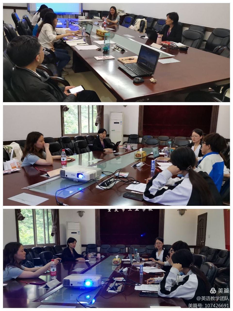 5月25日,英语教学团队全体成员在团队负责人李采儒老师的带领下在世纪楼三楼大会议室开展了磨课、说课、评课教学能力提升活动。在活动中针对学校专业特色进行了教学改革的讨论。为了贯彻以学生为主体的教学理念,团队专门邀请了三名同学参加,并参与讨论。