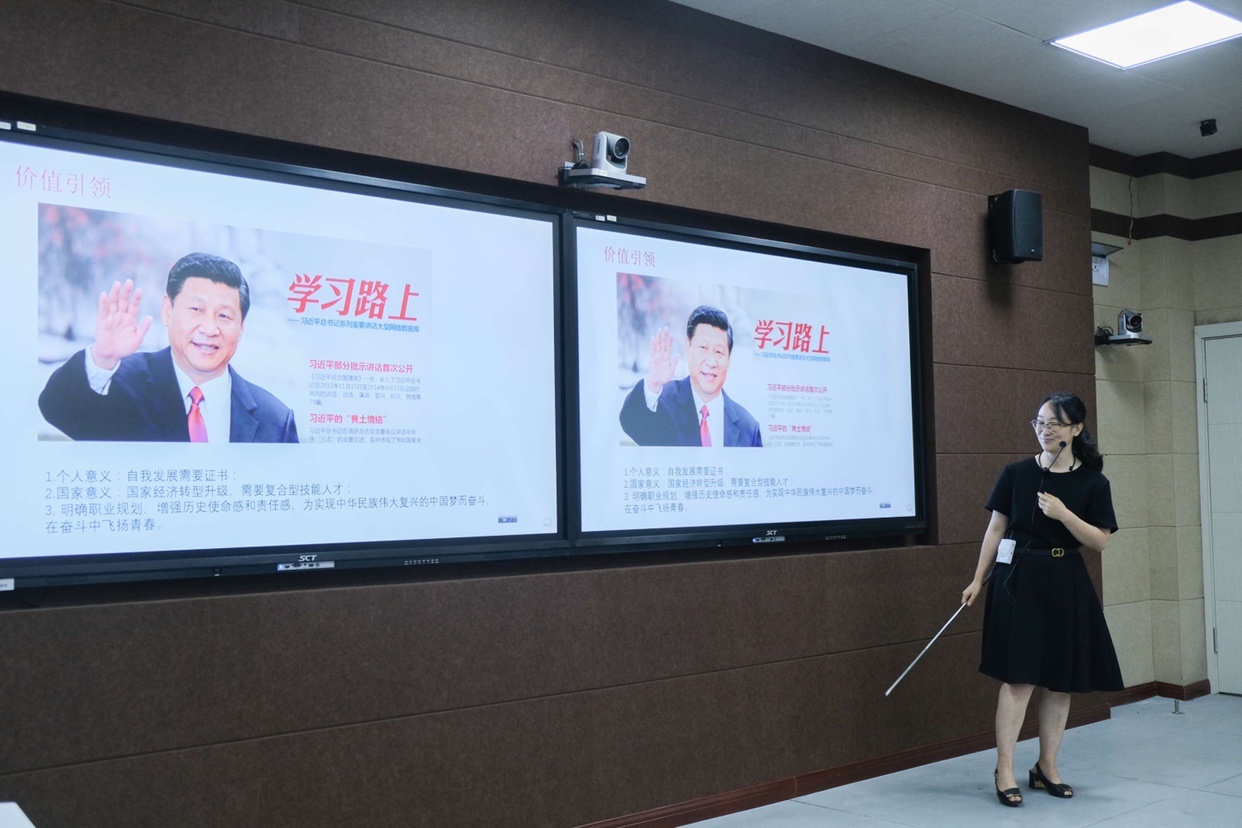 为深入贯彻《国家职业教育改革实施方案》和习近平总书记在全国思想政治课教师座谈会上的讲话精神,响应学校课程思政总体任务安排,大力推动以“课程思政”为目标的课堂教学改革,基础教育部“红岩魂”思政工作室于2021年6月16日下午在世纪楼3楼未来教室举办了“课程思政教学比赛”。重庆工信职业学院、best365英国体育在线副校长邬疆、发改办主任万美春、数据中心刘辉元主任、教工部刘维胜主任等莅临现场指导并担任评委,全体基础部教师观摩比赛。