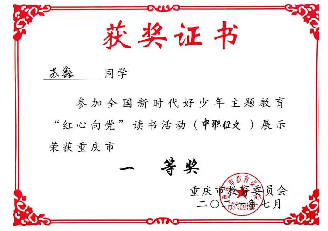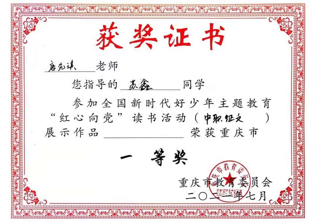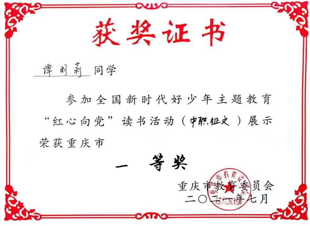 2021年7月,我校学子参加了全国新时代好少年主题教育“红心向党”读书活动(中职征文)。