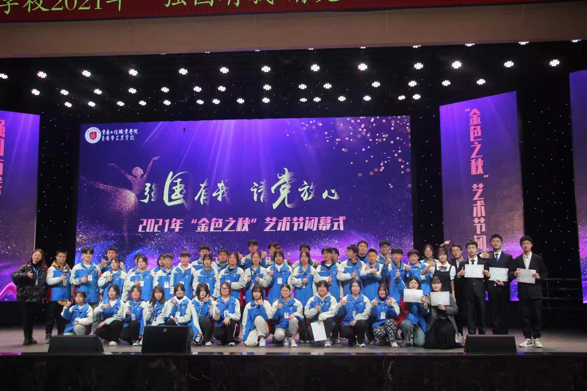 每一次结束都是更好的开始,让我们带着欢笑、怀揣梦想、坚定信心、一往无前。以饱满的热情、用心的态度、昂扬的斗志,昭示靓丽的青春风采,谱写精彩的生活乐章,创造辉煌的人生里程!至此,重庆工信职业学院、best365体育2021年“强国有我 请党放心”“金色之秋”艺术节完美落幕,同学们!我们明年再会!