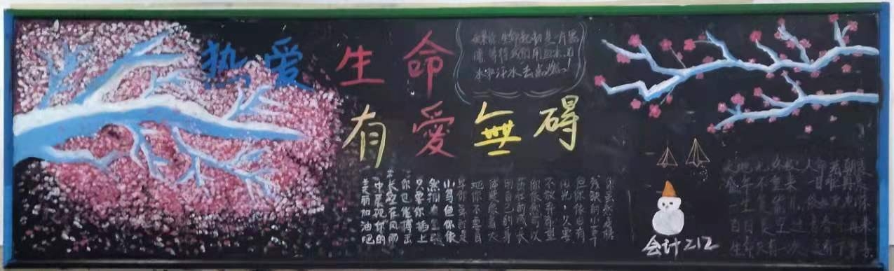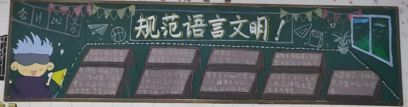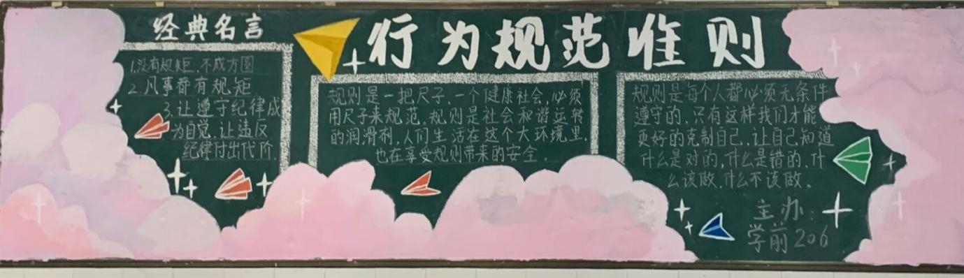 每月各班级根据月德育活动主题词对黑板报进行设计与布置,校学生会宣传部每月例行检查与评比,一学期下来汇总了大量主题黑板报精彩作品,随小编的镜头一起来看看你的班级是否入选呢? 九月|规范 计平213 学前206 会计202 会计213 教育211 土建213 十月|热爱 会计212 计算机214 土建214 土建213 轨运211 工美201 分析211 教育211 会计202 教育0204 轨运211 分析211 轨运212 土建213 黑板报作为校园文化的重要窗口,是学校德育教育的重要阵地。黑板报作为班级文化建设中不可缺少的一部分,发挥着重要作用:学生施展才华、倾诉心声、挖掘知识“宝库”、教育宣传,其方便快捷、灵活多样的内容,多角度地对同学们进行爱国主义、集体主义教育等,提升同学们的思想观念和道德观念,培养他们正确的世界观、人生观、价值观,促进班集体的蓬勃发展。 一幅幅精美的黑板报凝结了班级同学的心血,营造了温暖、有爱、用心的教室环境。本学期的优秀黑板报分享到此结束,期待下学期同学们的“大作”!