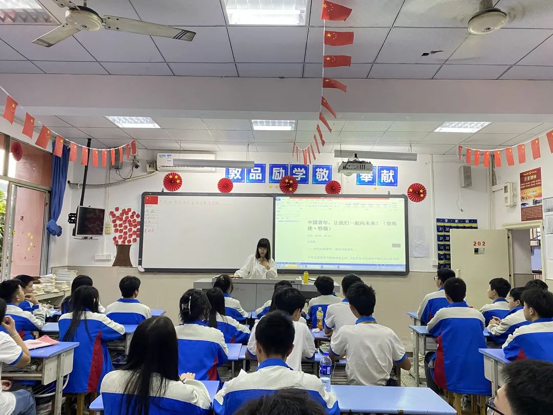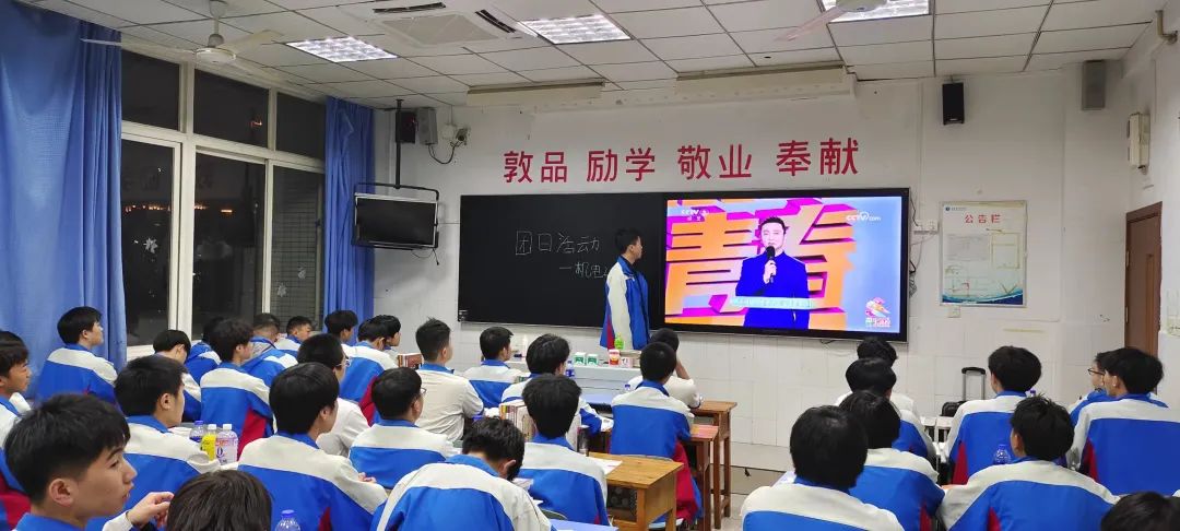 100年来,中国青年满怀对祖国和人民的赤子之心,积极投身党领导的革命、建设、改革伟大事业,为人民战斗、为祖国献身、为幸福生活奋斗,把最美好的青春献给祖国和人民,谱写了一曲又一曲壮丽的青春之歌。 ——习近平 各团支部组织集中学习《习近平在中国人民大学考察时的讲话》、《努力成长为堪当民族复兴重任的时代新人》、《中国青年,让我们一起向未来》等精神。 组织学干、团干观看“青春心向党 建功新时代”五四主题网络直播活动——共青团优秀网络文化产品展播。 全校班级观看“百年青春 当燃有我”五四青年节青春讲演剧。 建功新时代 百年正青春 组织全校班级观看奋斗的青春——2022年五四青年节特别节目。 青春生生不息 奋斗未有穷期 中国梦的未来属于青年 新时代的荣光属于青年 百年奋斗 薪火相传 青春当燃 有我在场
