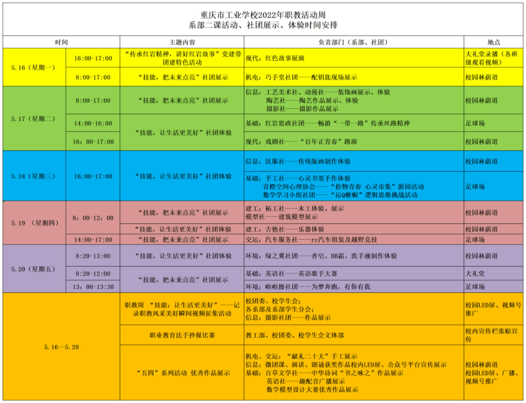 职教活动周||二课活动安排“新鲜出炉”啦!