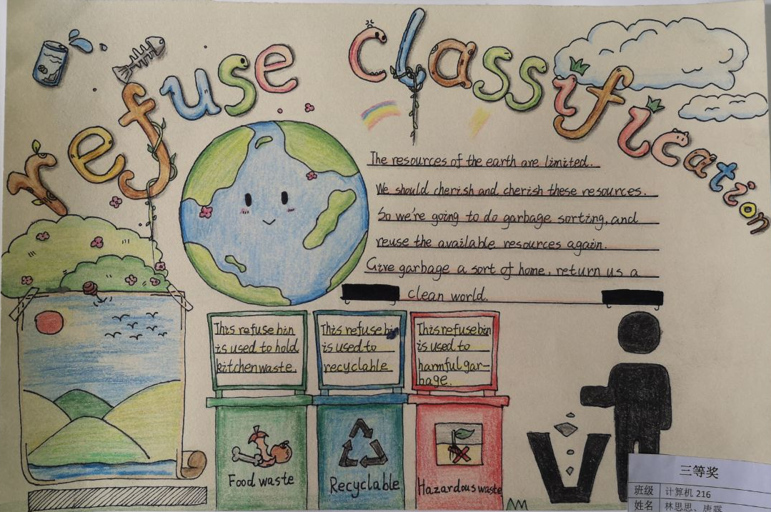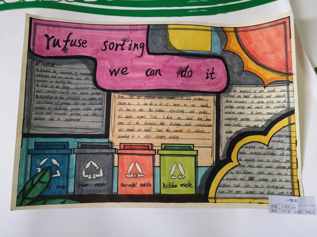 三四万物皆回苏,至若榴月近荷初。随着五月末尾的到来,“英为有你”趣味英语社举办的垃圾分类英文海报制作比赛和英语趣配音活动都纷纷落下帷幕。在各位同学的积极和还未褪去的热情中,在此为两次活动画上了圆满的句号。 经过将近两个月左右的精心策划和准备,加上同学们对两次活动的大力支持,英文海报制作比赛共收获作品213份,其中获奖作品55份,趣配音作品96份,其中获奖作品19份。以下是两次活动中部分优秀作品展示,各位老师和同学们赶快来欣赏欣赏吧! 计平201 高丹 计平201 张秋旭 计算机214 周雨晴 计算机214 陈俊弘 计算机216 雷俊松 计算机216 张何杰 彭宇 蹇郡豪 计平201 聂晓庆 计算机214 刘佳期 计算机216 郭晨韵 学前204 段颖 学前201 钟彩云 计算机216 郑宇彦 李峥艳 李虹莹 学前201 朱图赤 学前204 凌洪英 学前206 孙艳婕 机电201 李林杰 计算机216 林思思 唐露 通过两次英语趣味活动,相信同学们也从中体会到不少英语所带来的快乐。虽然也有遗憾落榜的作品,但同学们的才华不止于此,再接再厉,终有获奖之日。今后这样的活动也会有更多哦!通过这样的活动,同学们有了展示自我英语才华的舞台,这些宝贵的经验不论是在今后的学习还是工作都将大有裨益。 趣味英语社给大家带来的惊喜可远不止这些哟,望各位同学在下次的活动中能更加大放光彩!