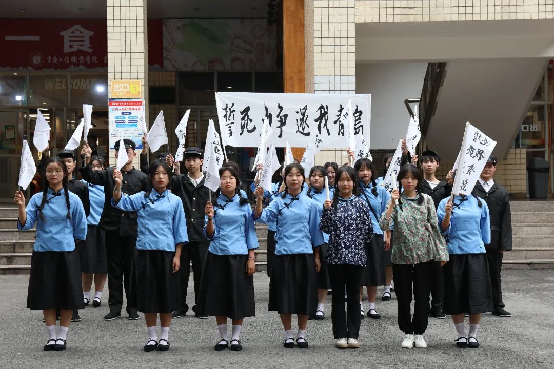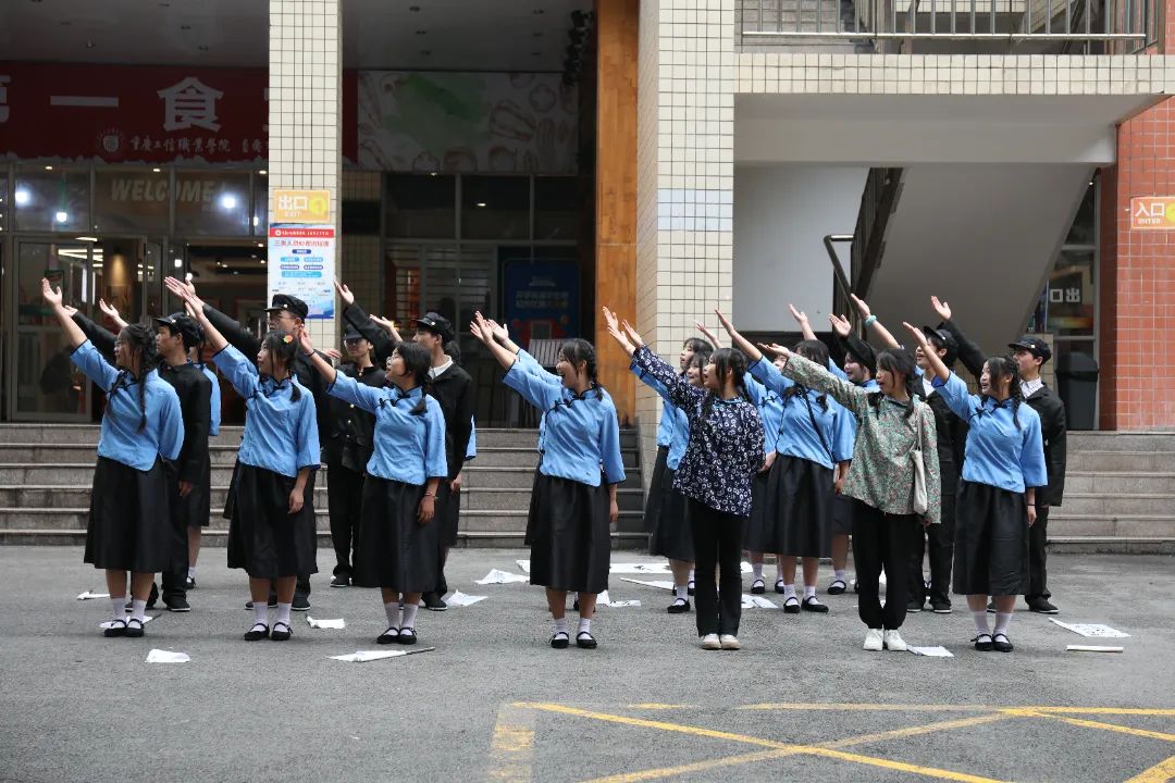为传承五四精神,谱写青春新篇章,5月19日,现代服务系戏剧社在职业教育活动周进行了首秀。通过戏剧路演的方式,以“百年正青春”为主题,展现百年前的五四运动,让同学们不仅感受到戏剧的魅力,也进一步培养爱国主义情怀。 本次路演结合了朗诵、合唱、戏剧表演等方式,再现了1919年1月巴黎和会上,本为战胜国的中国外交失败,消息传回国内后,爱国青年们义愤填膺,由此开展的一场声势浩大的反帝爱国运动。 同学们合唱《国际歌》和《光荣啊!中国共青团》两首曲目。用《国际歌》表现百年前的爱国青年不愿受到压迫,想要奋起反抗的决心;《光荣啊!中国共青团》则与百年前的爱国青年情感上相呼应,作为新时代的接班人,同学们定将用自己的专业技能,为祖国贡献出自己的一份力量。 在平时的社团活动中,指导老师从“声、台、形、表”四个方面帮助同学们了解戏剧的表演形式、感受不同戏剧所要表现的不同情绪。 现代服务系戏剧社通过“路演”的方式再现了一百年前“五四运动”的场景,让广大师生们亲临历史、感受历史;既培养了同学们的思想意识,又熏陶了艺术情怀!让莘莘学子们铭记历史、珍惜现在的幸福生活;不忘初心,做新时代的好青年!