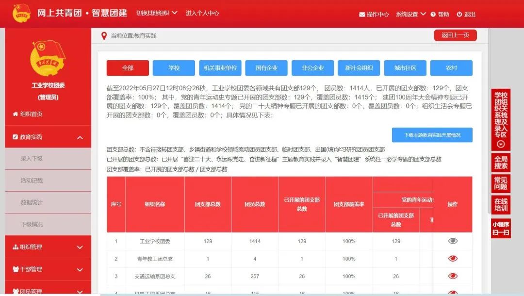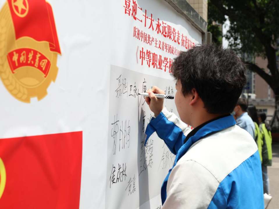 各级团组织继续推进“六查六问”专项行动,重点落实团员“自检”工作。 校组织部开展本年度团费收缴工作。 业余团校每周开展一次团课集中培训:第4讲“敢教日月换新天”、第5讲“我和我的祖国”、第6讲“扣好人生'第一粒扣子'”、第7讲“我奉献,我快乐”。 青年教职工团支部开展“坚定理想信念 勇担青春使命”主题团日活动,学习了习总书记在中国共产主义青年团成立100周年大会上的重要讲话精神。 各级团组织按时完成“喜迎二十大,永远跟党走,奋进新征程”主题团日活动:党的青年运动史、建团100周年大会精神。 庆祝中国共产主义青年团 成立100周年 学校团委委员、团员青年代表共同演唱《强国一代有我在》,庆祝中国共产主义青年团成立100周年。 五四前后,各级团组织集中学习《习近平在中国人民大学考察时的讲话》、《努力成长为堪当民族复兴重任的时代新人》、《中国青年,让我们一起向未来》等精神;观看五四主题网络直播、五四青年节青春讲演剧等视频。 观看庆祝中国共产主义青年团 成立100周年大会 5月10日,校团委组织团干代表收看庆祝中国共产主义青年团成立100周年大会,重点学习会上习总书记重要讲话精神。 五月中旬,校团委组织开展“奋进新征程 建功新时代”庆祝中国共产主义青年团成立100周年暨2021-2022年度五四表彰大会。 “百年正青春,建功新时代” 系列活动 “‘青’说团史”微团课大赛 “少年向上·我和我的家乡” 主题演讲、朗诵 “地图上的青运史” 中国青年运动史教育 精品线路打卡 “00后眼中的国家发展” 微视频大赛 乒乓球比赛 足球比赛 投壶体验、剪纸版画体验 灯谜体验、创意几何体设计 中华诗词·书之写之 《中等职业学校学生公约》 视频征集 校团委组织开展best365体育2022年“文明风采”大赛:“匠心追梦 经典诵读”集体诵读比赛、“匠心逐梦 践行公约”短视频创作比赛、“匠心筑梦 影为有你”摄影作品比赛、“匠心圆梦 技能报国”教师技能绝活展示。 5月25日上午,学校举办第一届“5.25心理健康文化节”,学校青橙空间开展“拾物青春 心灵市集”游园活动。 5月24日下午,校团委邀请渝中区检察院“莎姐”检察官范晓雯在大礼堂为我校学生开展了一堂生动形象的法治教育课。 常规开展“红色观影”活动,本月影片《99万次拥抱》、《焦裕禄》。 参与职教学会“职教满园香 一起向未来”优秀节目展演活动,组织报送《把未来点亮》、《追随》两个节目。 作为新成立的社团,非遗手编社团第一次活动展示了指导教师手工作品并展开了招新活动。 动漫社围绕“传统文化”主题词开展了中国传统文化黑白装饰画设计活动。 戏剧社开展了“百年正青春”为主题的“青春与信仰对话”路演活动。