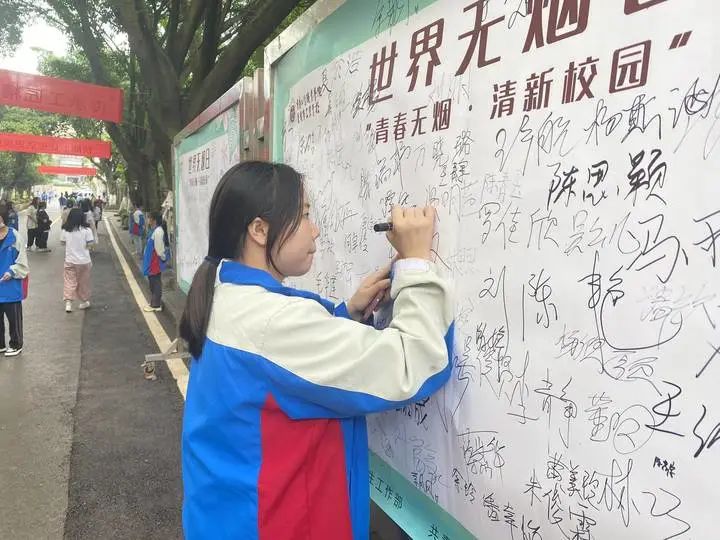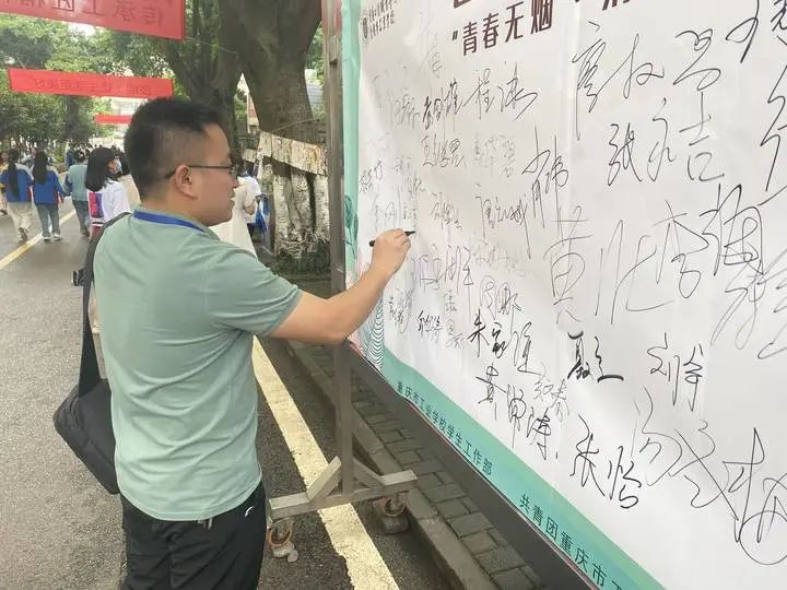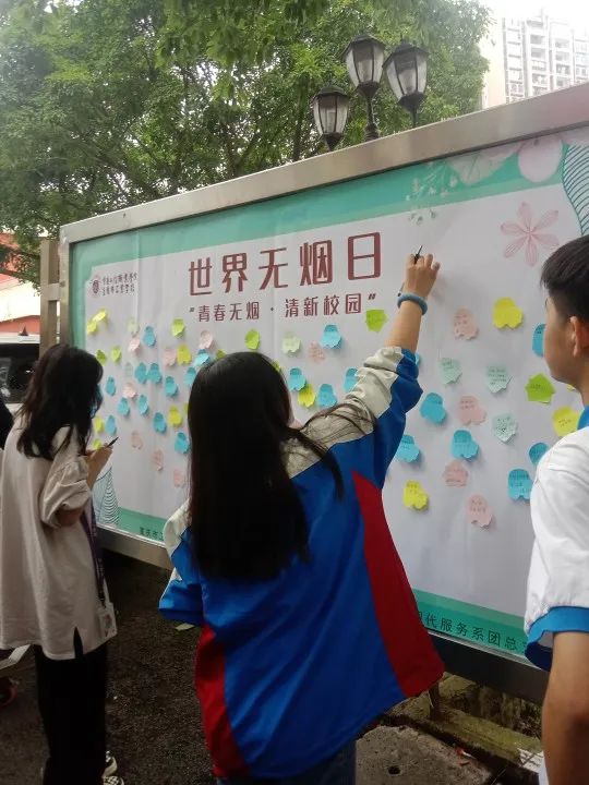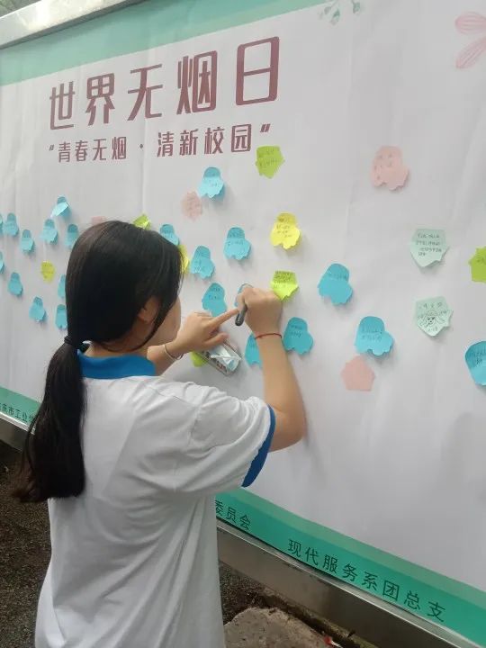 5月31日,best365英国体育在线学生工作部、校团委和现代服务系联合开展了“世界无烟日”主题活动。 在林荫道上,挂满了近百幅现代服务系学生自制的手抄报。这些手抄报主题鲜明,色彩绚丽,深刻表达了同学们创建“无烟校园”的决心,吸引了广大师生驻足观看! 创建无烟校园需要广大师生的支持。老师和同学们都积极的在签名板上签名,表达了自己对禁烟行动的支持。 还有不少同学将自己对无烟日的心声写到了便签上,贴满了整个签名版。 通过“世界无烟日”主题活动,希望同学们在以后的生活中做一个好青年,远离烟草,拒绝吸第一支烟。蓝色的天,需要我们去守护;好榜样,需要我们去传承。拒绝吸烟,做新一代好青年。